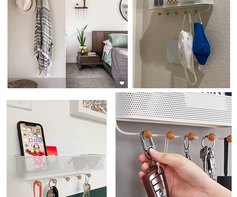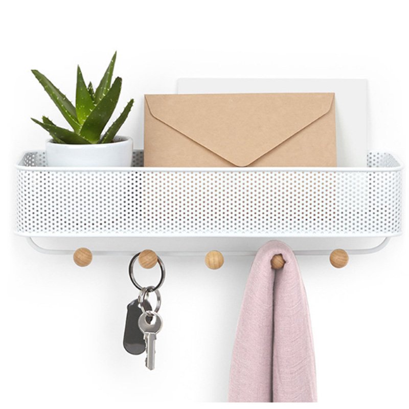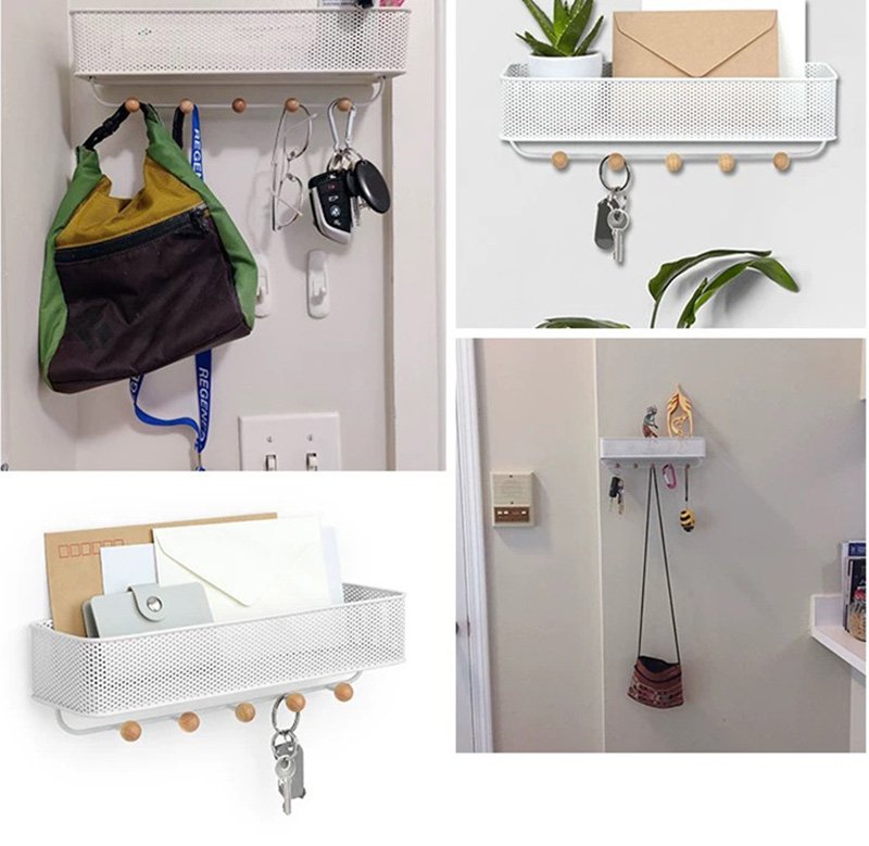 Multi-purpose metal storage hanging basket which can be used in the entrance to store sundries like keys and wallets, and also in the bathroom to store bathroom supplies