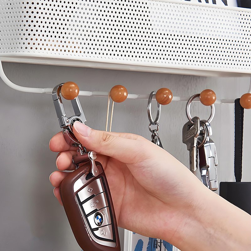 Drill-free rear-door storage rack with hooks, which can be used to store clothes, hats, keys and other small items Bathroom Storage Rack
