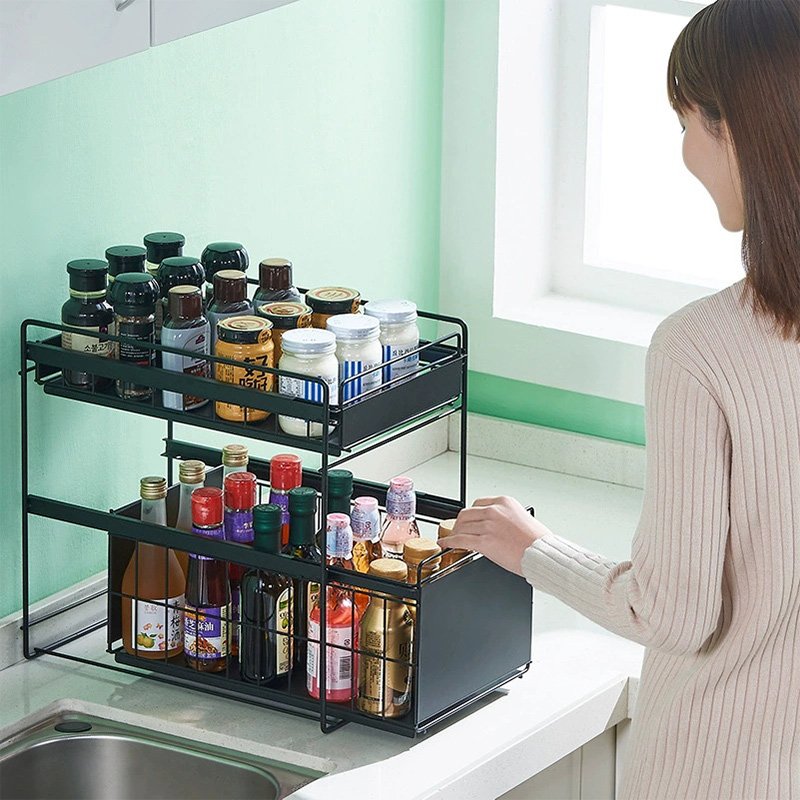 Multi-layer drawer-type push-pull spice storage rack that can be placed in the kitchen cabinet Kitchen Storage Rack
