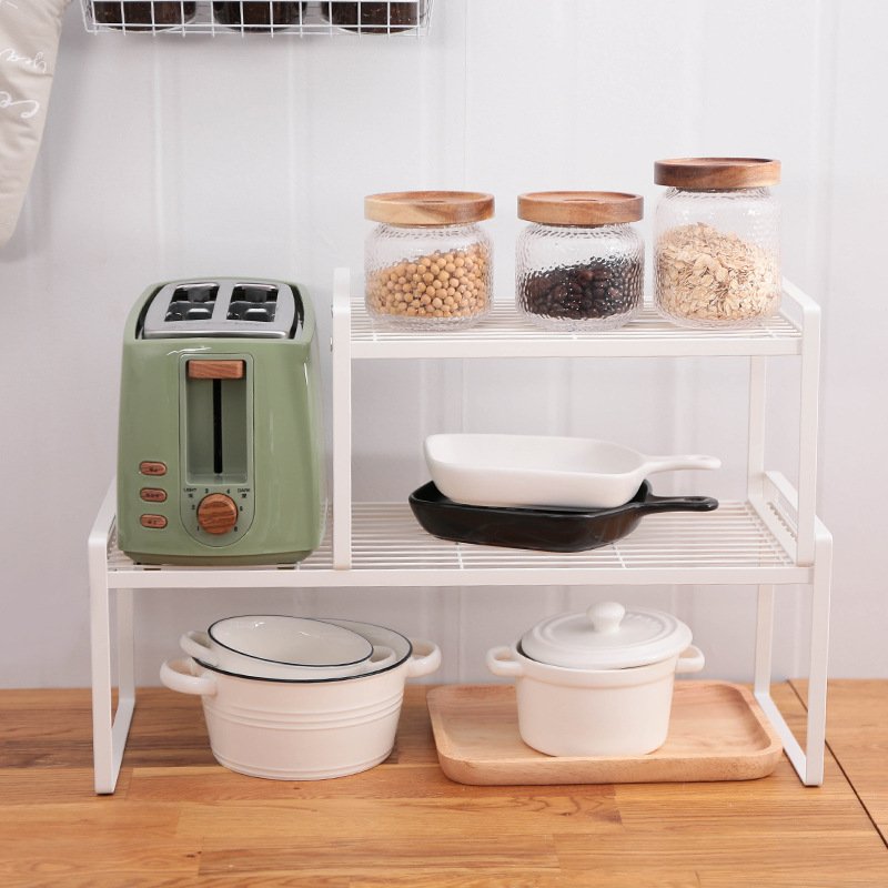 Stackable multi – layer wrought – iron storage rack, which is used for storing and organizing seasoning containers, bowls, plates, spoons, chopsticks, etc. in the kitchen Kitchen Storage Rack
