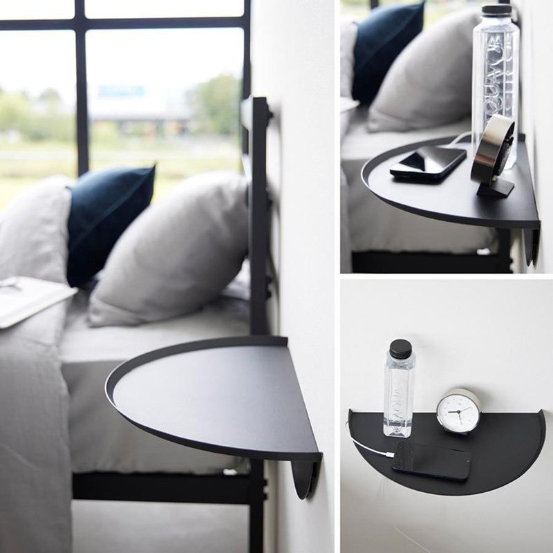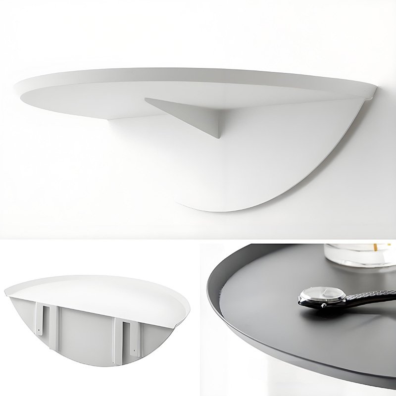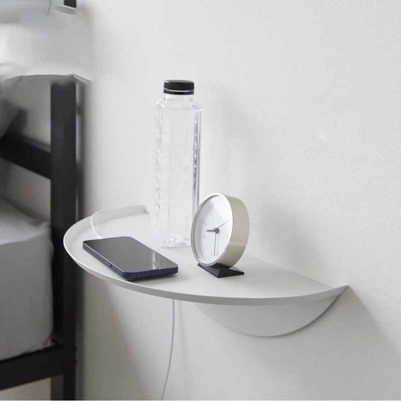 Wall-mounted semicircular storage tray which can be placed in the bedroom or hallway and is used to hold small items
