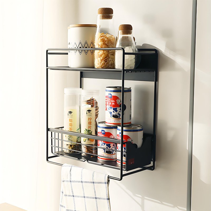 Multifunctional magnetic refrigerator side storage rack that requires no installation which can be used to organize spice bottles, oil and salt cans, rags, etc Kitchen Storage Rack