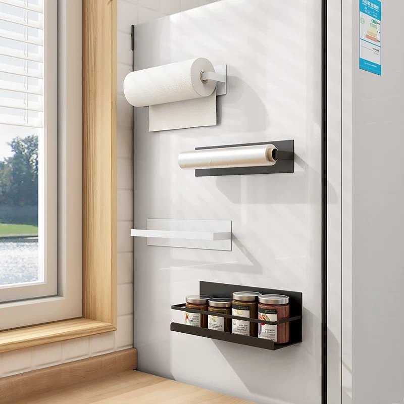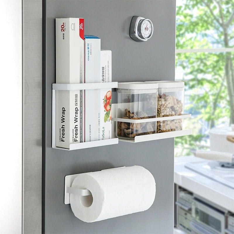 Japanese minimalist multifunctional magnetic tissue holder rack for toilet paper, plastic wrap and dishcloths