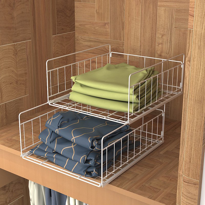 A layered partition for wardrobes and cabinets that requires no drilling for installation which can be used in bedrooms, bathrooms and dormitories for layered storage Bed Room Rack