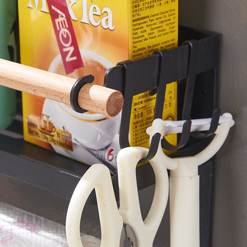 Multifunctional detachable lid storage rack for the kitchen that requires no drilling which also be used to hold soup spoons, chopsticks, spatulas and cutting boards Kitchen Storage Rack