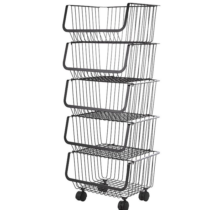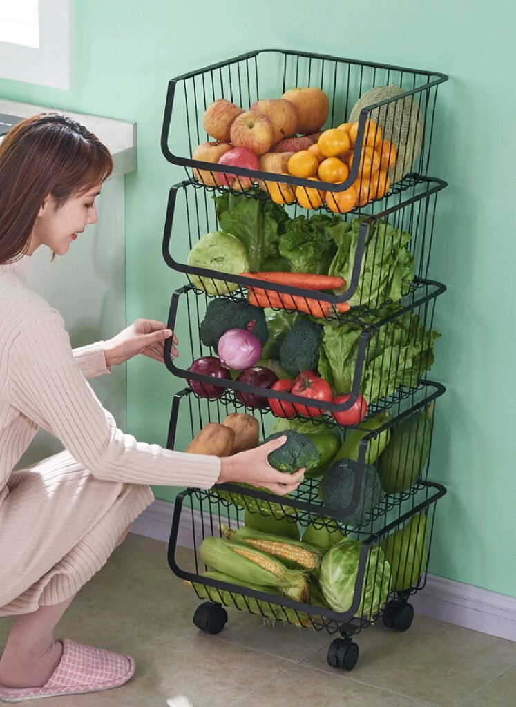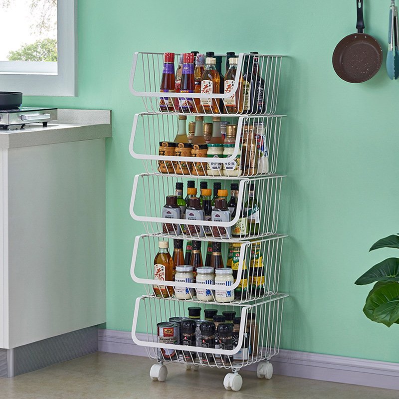 304 stainless steel movable stackable storage rack with pulleys can be used to store fruits, vegetables and snacks in the kitchen, living room and bathroom