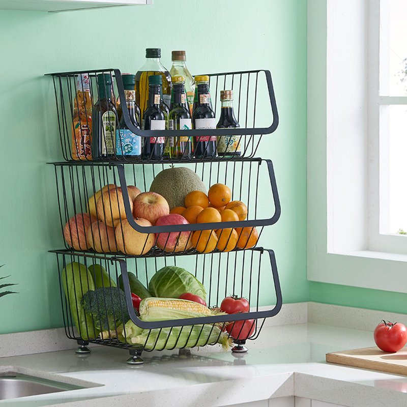 Stackable multi – layer wrought – iron storage rack, which is used for storing and organizing seasoning containers, bowls, plates, spoons, chopsticks, etc. in the kitchen Kitchen Storage Rack