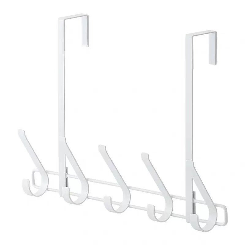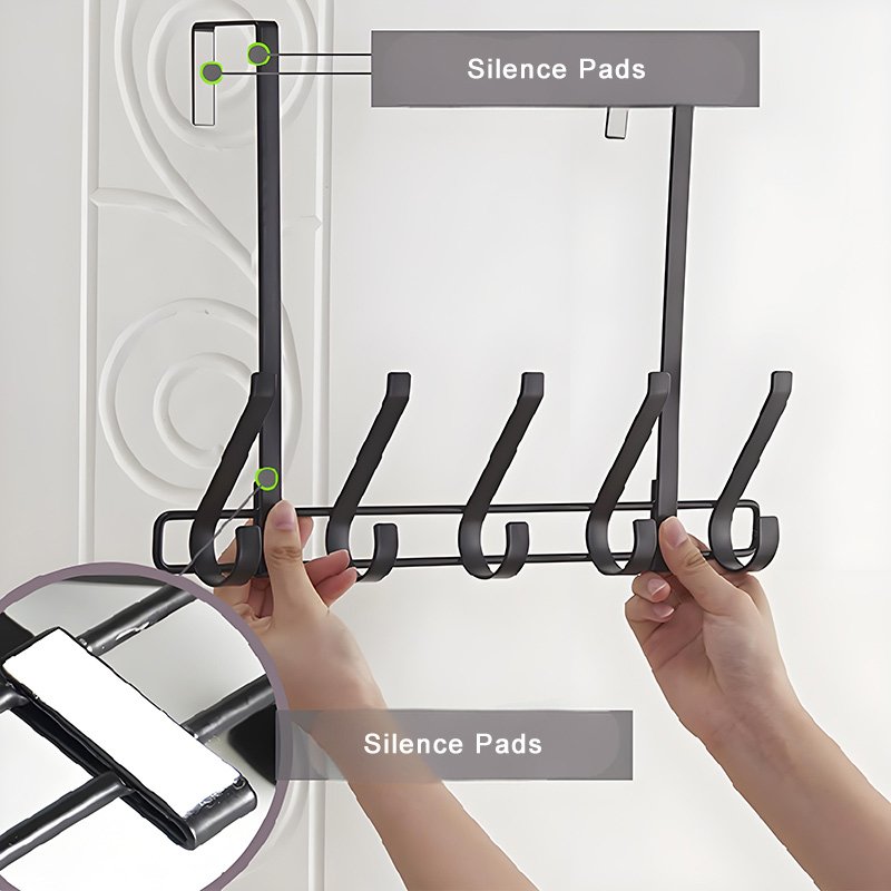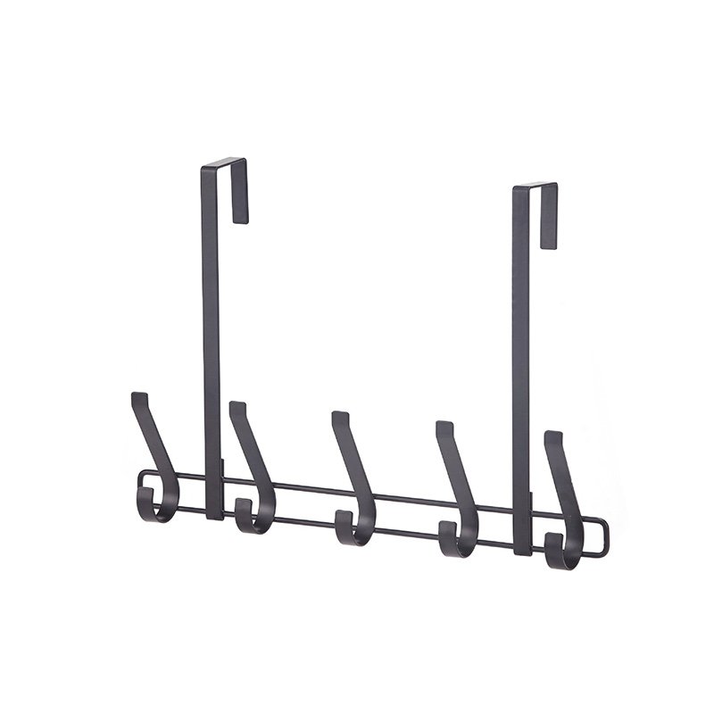 Drill-free rear-door storage rack with hooks, which can be used to store clothes, hats, keys and other small items