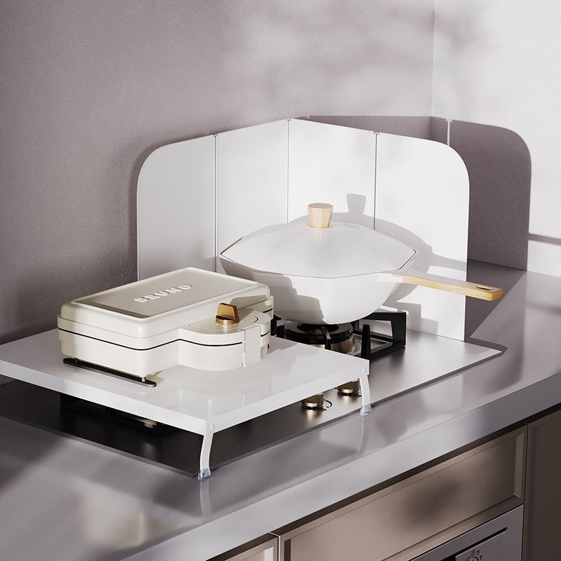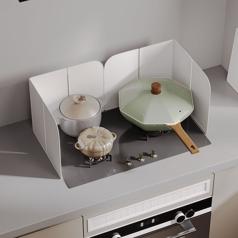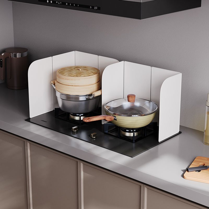 Foldable metal baffle for gas stoves, used to block oil, insulate heat, prevent oil splashing and resist high temperatures