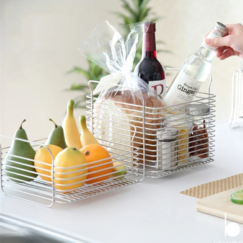 Japanese and Korean style stainless steel storage basket, which is used to store fruits, bread, drinks, nuts and other snacks Kitchen Storage Rack